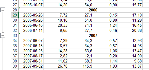 W Excelu dane tabelaryczne można sortować, filtrować - także według wielu kryteriów, grupować, przenosić i ukrywać.