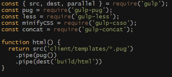 Gulp udostępnia szereg wbudowanych operacji oraz mnóstwo pluginów, a skrypty budujące pisze się w JavaScripcie. Kombinacja ta pozwala łatwo stworzyć nawet bardzo zaawansowane operacje w procesie budowania.
