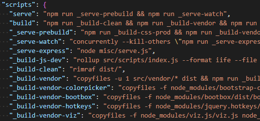 Inną możliwością jest bezpośrednie wykorzystanie pakietów npm do budowania aplikacji i wykonywanych jako skrypty npm. Zapis jest mniej przejrzysty, ale do prostszych procesów metoda ta jest w zupełności wystarczająca.